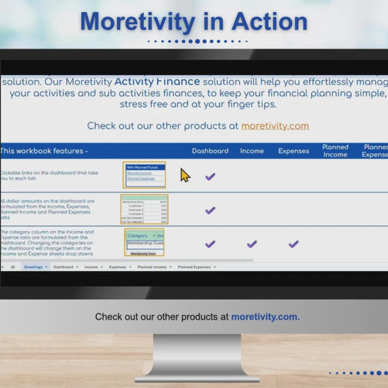 Greetings and Salutations! Welcome to Moretivity, your premier activity planning solution. Our Moretivity Activity Finance solution will help you effortlessly manage your activities and sub activities finances, to keep your financial planning simple, stress free and at your finger tips.